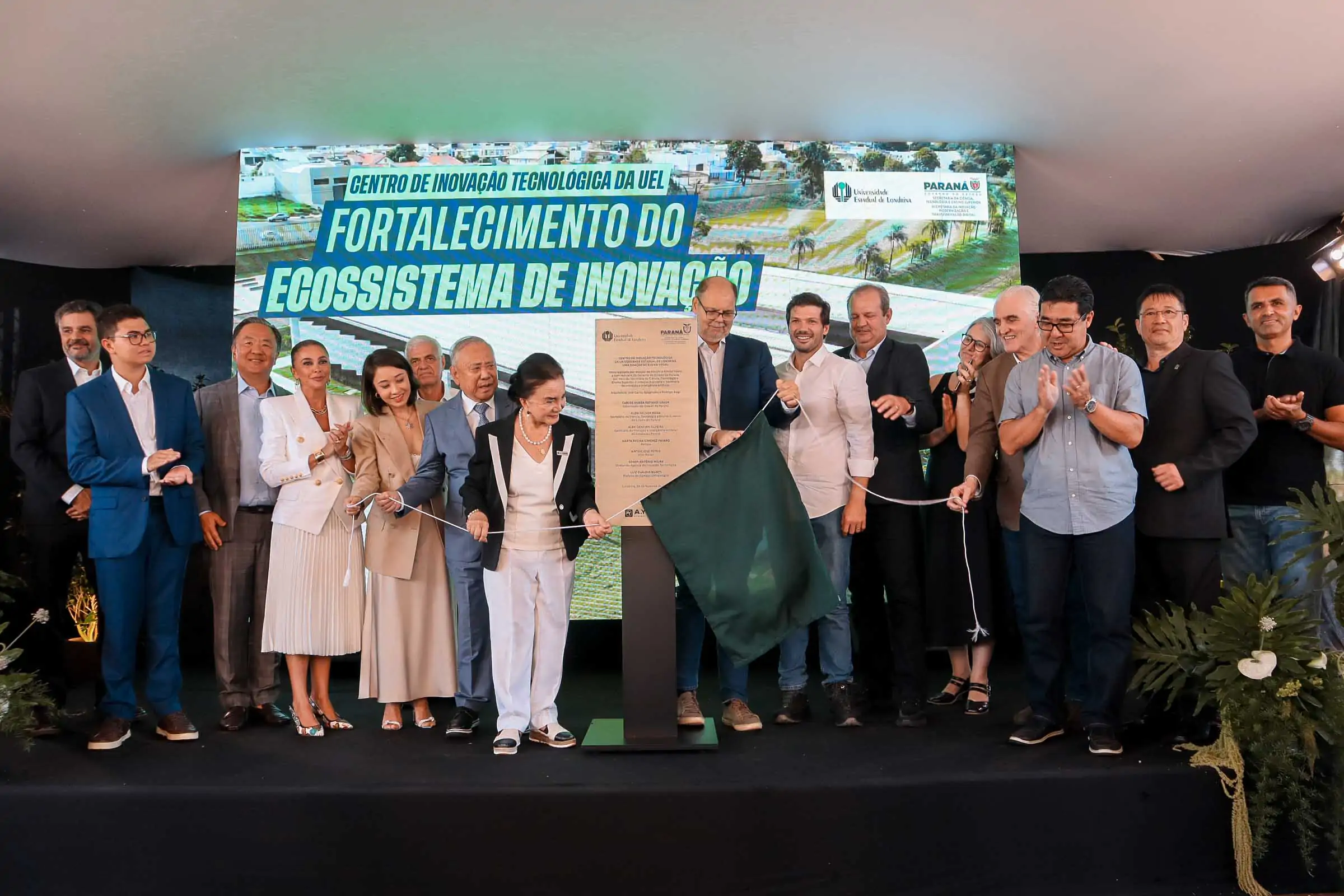 Com a presença de dezenas de autoridades, pesquisadores, convidados e membros da comunidade Universitária, foi entregue neste sábado (28) o prédio do Centro de Inovação Tecnológica (CIT), no Campus Universitário, estrutura que inicia a consolidação do Parque Tecnológico da UEL a partir de maior interação entre pesquisa, ambiente de inovação e empresas. A cerimônia foi realizada na área externa do prédio, localizado anexo à Agência de Inovação Tecnológica (AINTEC), reunindo os integrantes da Parceria Público Privada (PPP): Governo do Estado, UEL e o grupo A.Yoshii.