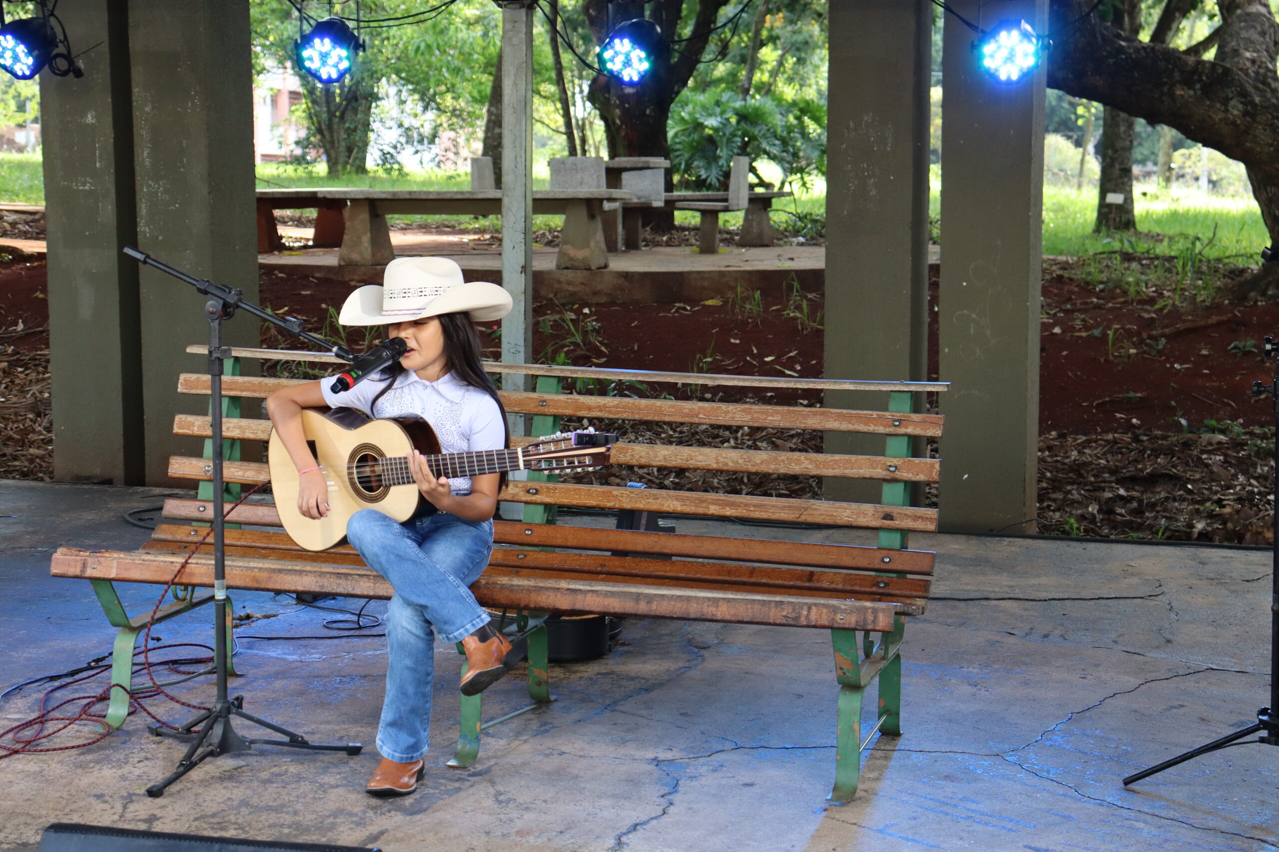 A hora do jantar no Restaurante Universitário foi contemplada com quatro apresentações. Três musicais e uma performance de dança. Sophia Moreira, aos 11 anos, levou um repertório de música sertaneja raiz. Interessada em tocar viola desde os 8 anos, Moreira começou a fazer aulas aos 9 e se destaca nas performances. Já conheceu vários artistas do segmento, apresentou-se em Curitiba e trouxe sua arte à UEL. Alessandra Barros de Oliveira, mãe de Sophia, contou à reportagem que a menina se interessou pelo sertanejo de raiz por conta própria: “a gente ouvia vários tipos de música. O pai dela ouvia música raiz, música sertaneja, eu gosto muito de mpb também, bossa nova, mas isso de ela gostar de Tião Carreiro é coisa dela, tanto que o foco dela era tocar pagode de viola”, afirma.