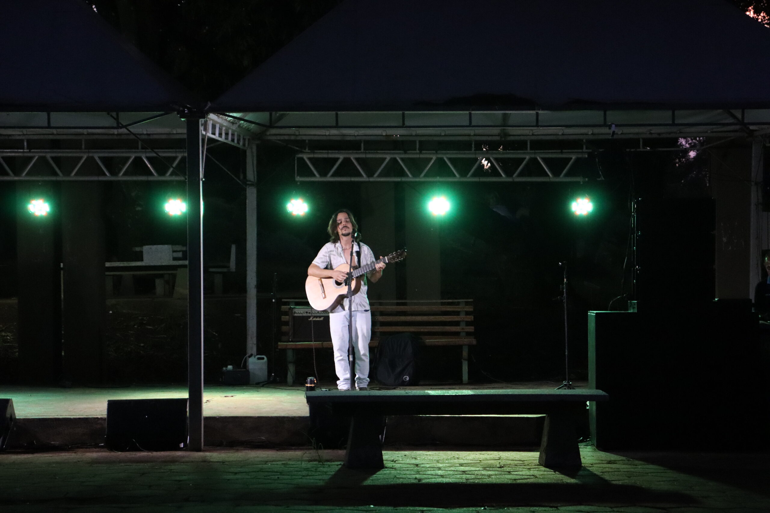 Encerrando as apresentações, Marco Aurélio Costa, doutorando em Sociologia, levou um repertório de música popular brasileira, com Jorge Mautner, Caetano Veloso, Belchior, Jorge Ben, Gilberto Gil e Djavan, músicos que admira e o influenciaram. Seu percurso na música começou quando ainda tinha 15 anos, tocando com amigos da escola. Aos 20 já tinha uma banda de rock com repertório autoral, gravando um EP com 6 músicas. “Foi uma grande conquista na época”, ressalta.