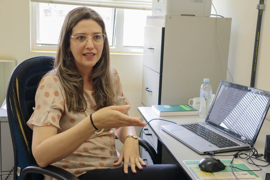 Professora Maria Zeraik: “Nós fazemos um fingerprint, como se fosse uma impressão digital, um panorama geral de tudo o que tem no fruto” (Foto: Agência UEL)