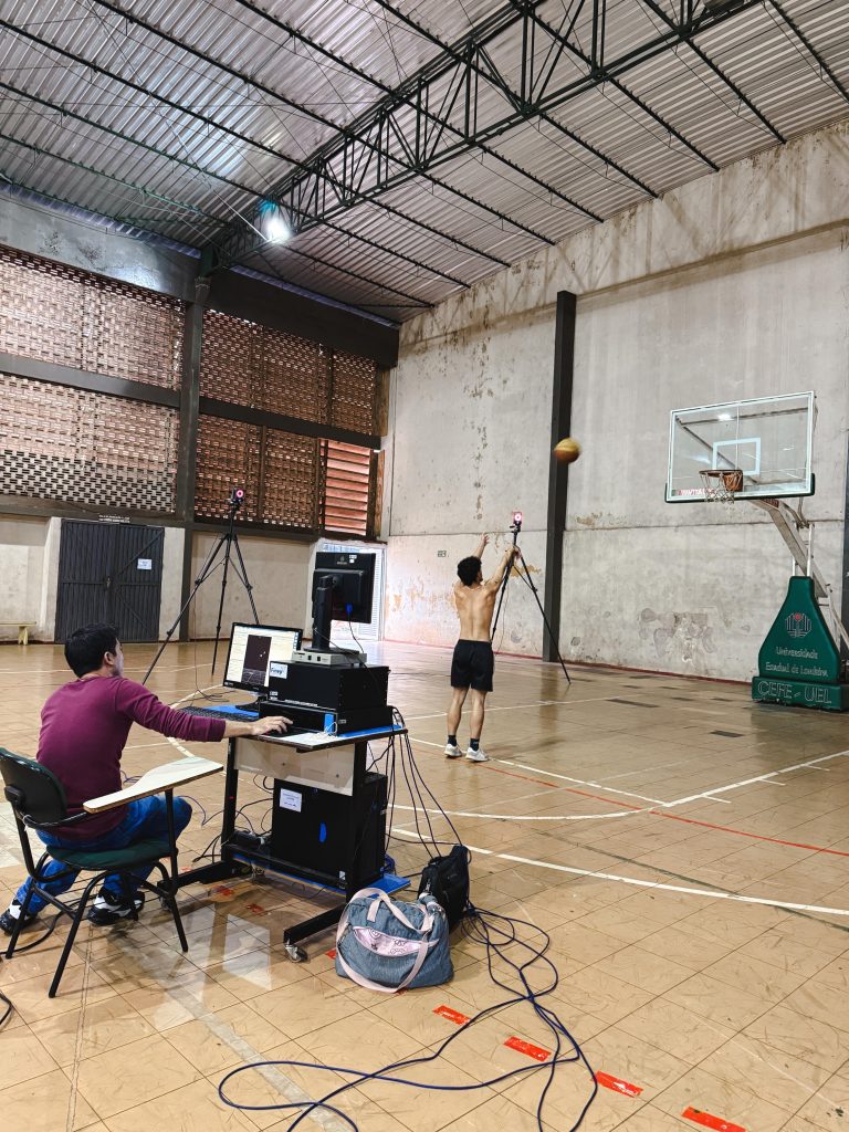 da UEL transformou o ginásio Coaracy, do Centro de Educação Física, em um grande laboratório de alta tecnologia para a Ciência do Esporte. Em um projeto que exemplifica a aproximação entre a Universidade e o Esporte de Alto Rendimento, a equipe profissional de basquetebol da APVE (Associação Pé Vermelho), Londrina Basketball, participou de uma análise biomecânica do arremesso de lance livre do