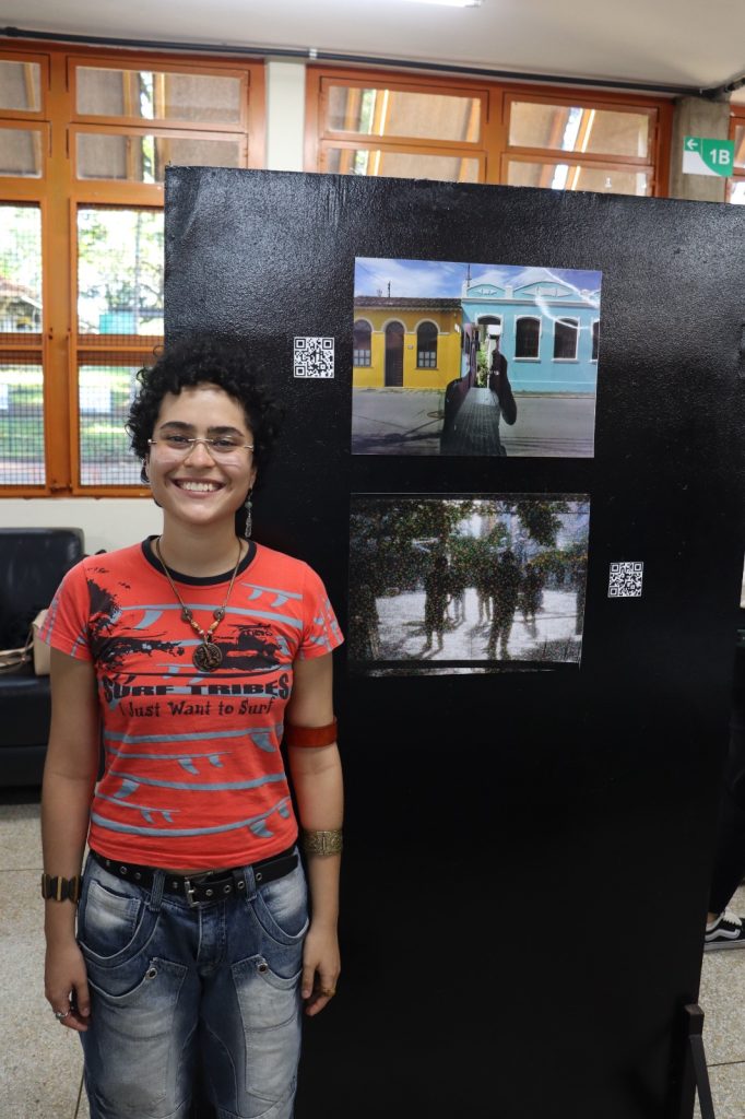 Gabriela de Castro Caetano, estudante de Ciências Sociais, inscreveu-se com uma série de fotografias urbanas, chamada “Cidade Grávida”. No último ano do curso, ela almeja estudar antropologia visual e se aproxima do tema na prática e na academia. “Nunca fiz uma exposição das minhas fotografias. Queria ter essa oportunidade”, comenta. Nesta seleção, seu olhar voltou-se para a cidade e seus jogos de luz e sombras, os contrastes, reflexos de vidros, entre outros elementos. “Eu gosto muito de olhar e ficar prestando atenção em como tudo é muito invertido e embaçado nesses reflexos. E mostra o que é essa cidade confusa, barulhenta e movimentada. Estou sempre procurando isso”, conta.