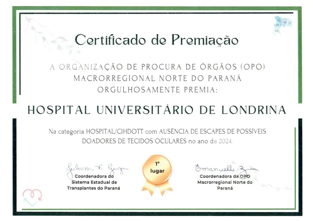 HU-UEL atinge 3 mil doações de córneas e se destaca como referência em doação de órgãos e tecidos