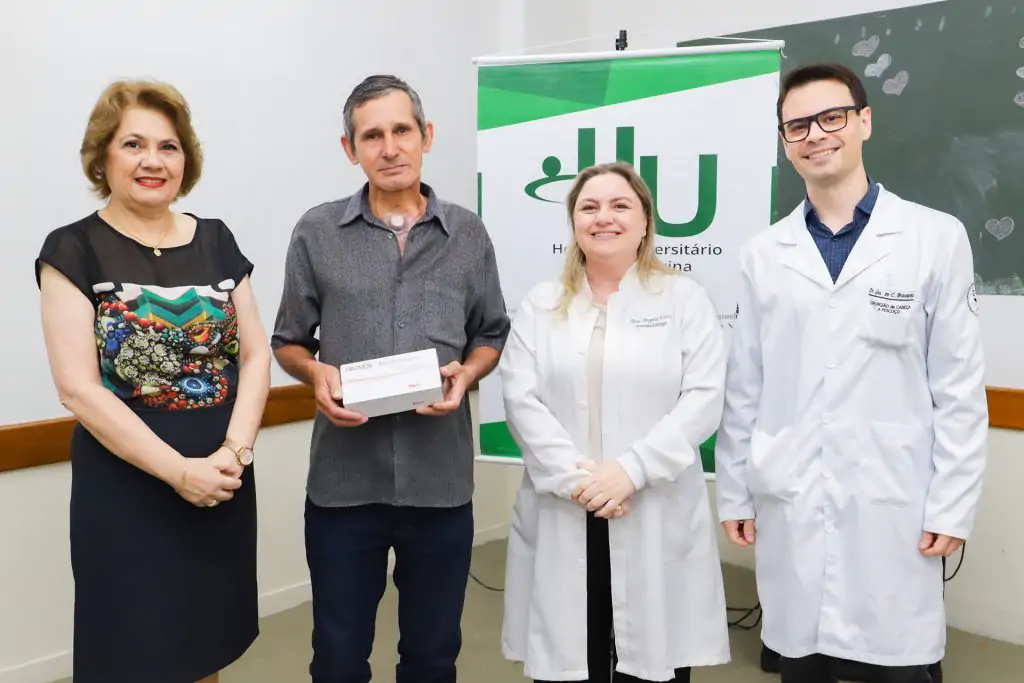 A cerimônia ocorreu no Ambulatório de Especialidade do HU (AEHU), e contou com a presença da superintendente do HU, Iara Secco, da diretora de Enfermagem, Flávia Oussaki, além do paciente e profissionais do Hospital. Após três anos de espera, Milton demonstrou imensa alegria e satisfação ao receber o dispositivo. Ele é o primeiro de muitos pacientes laringectomizados no Hospital que serão beneficiados.