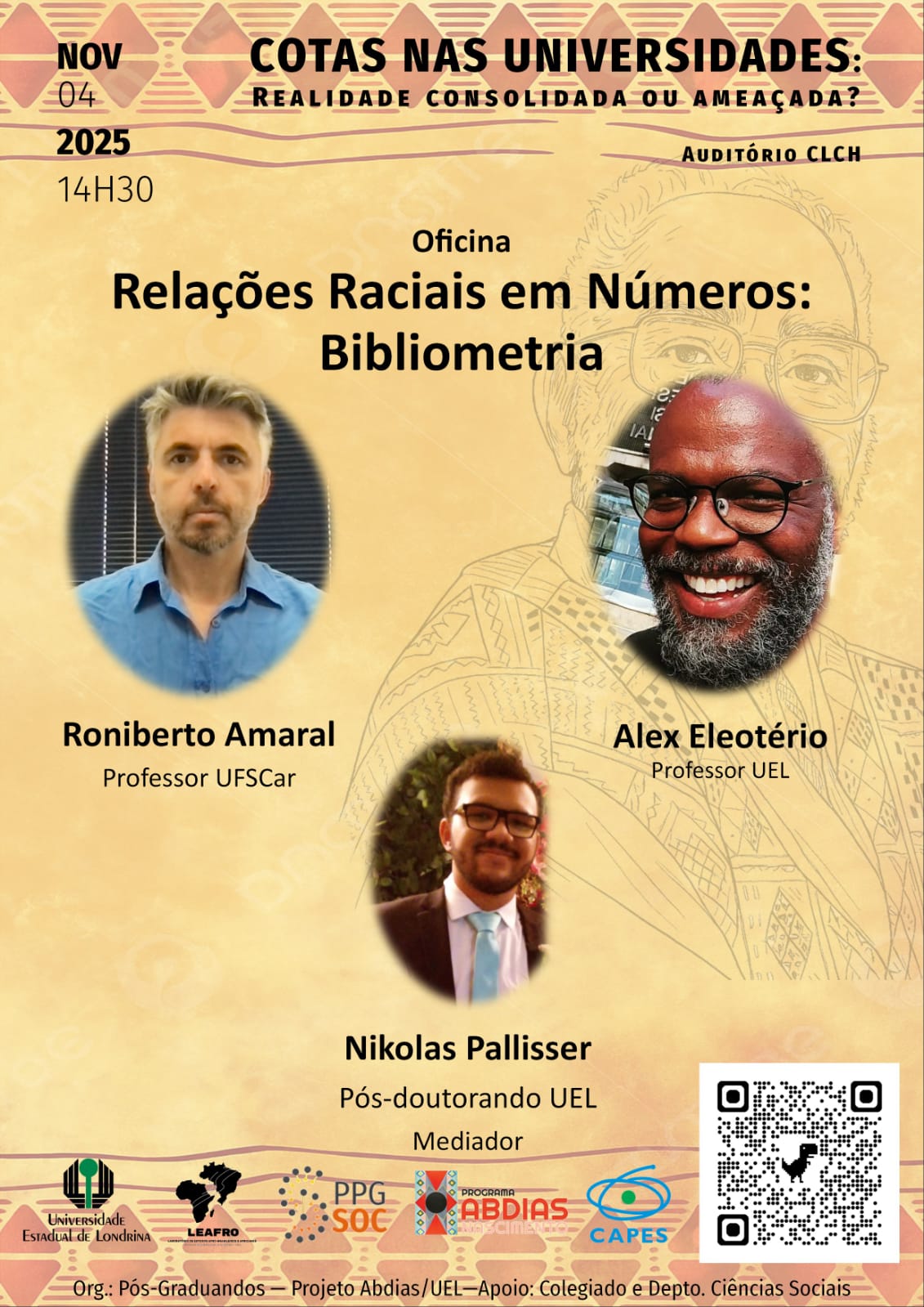 Com a abertura programada para esta segunda-feira (3), a programação do Novembro Negro 2025 irá percorrer o mês com atividades remotas e presencias.A Universidade Estadual de Londrina convida a sua comunidade acadêmica e a população de Londrina para acompanharem a programação do Mês da Consciência Negra, dedicado à reflexão sobre a Educação das Relações Étnico-raciais e sobre as cotas nas instituições de ensino superior brasileiras. As ações e eventos têm início nesta segunda-feira (3) e reforçam a atuação da UEL no enfrentamento ao racismo.