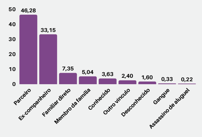 Ainda, a maioria das mulheres foi morta ou agredida em sua própria casa (38%) ou na residência do casal (21%), reforçando a hegemonia dos feminicídios íntimos.