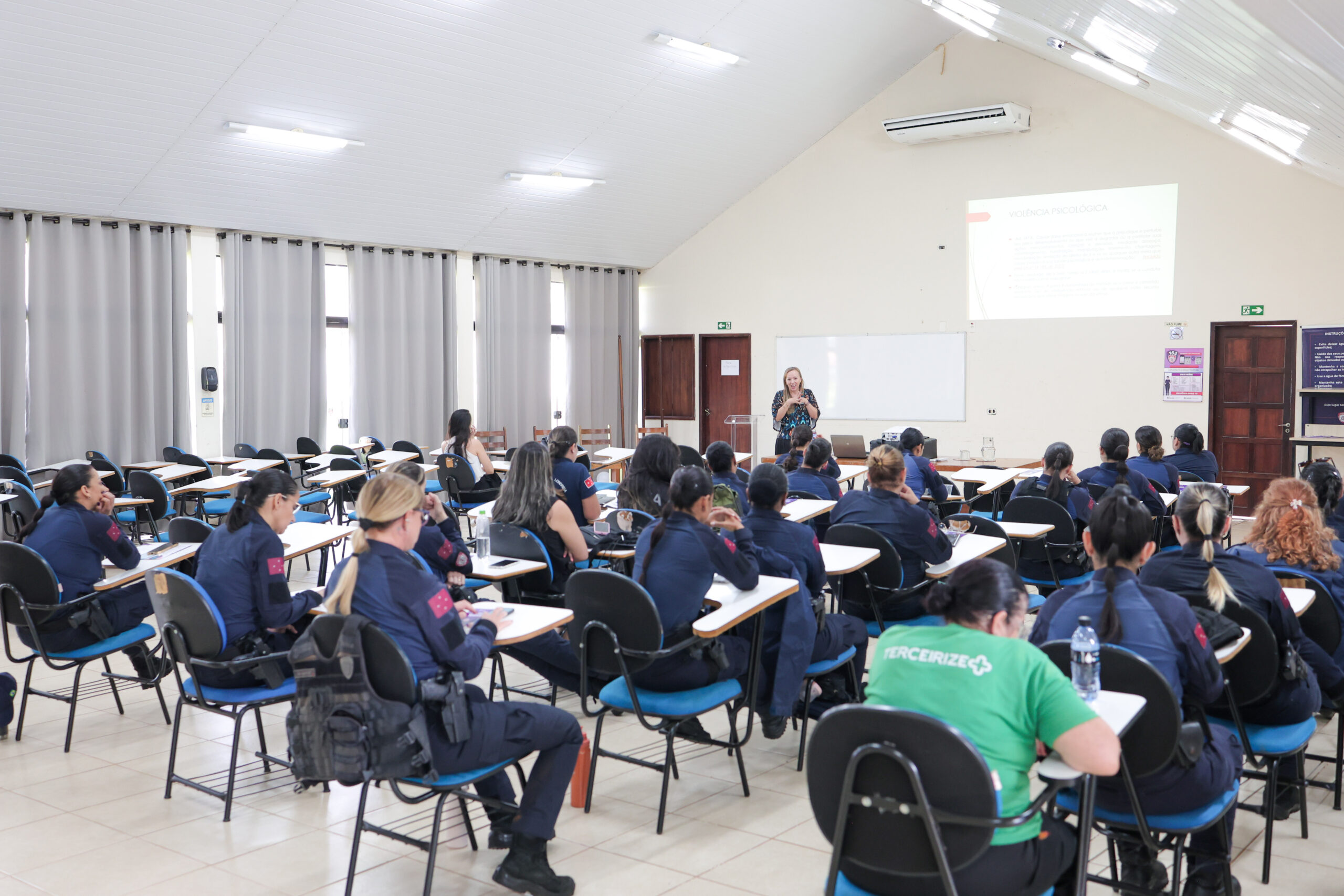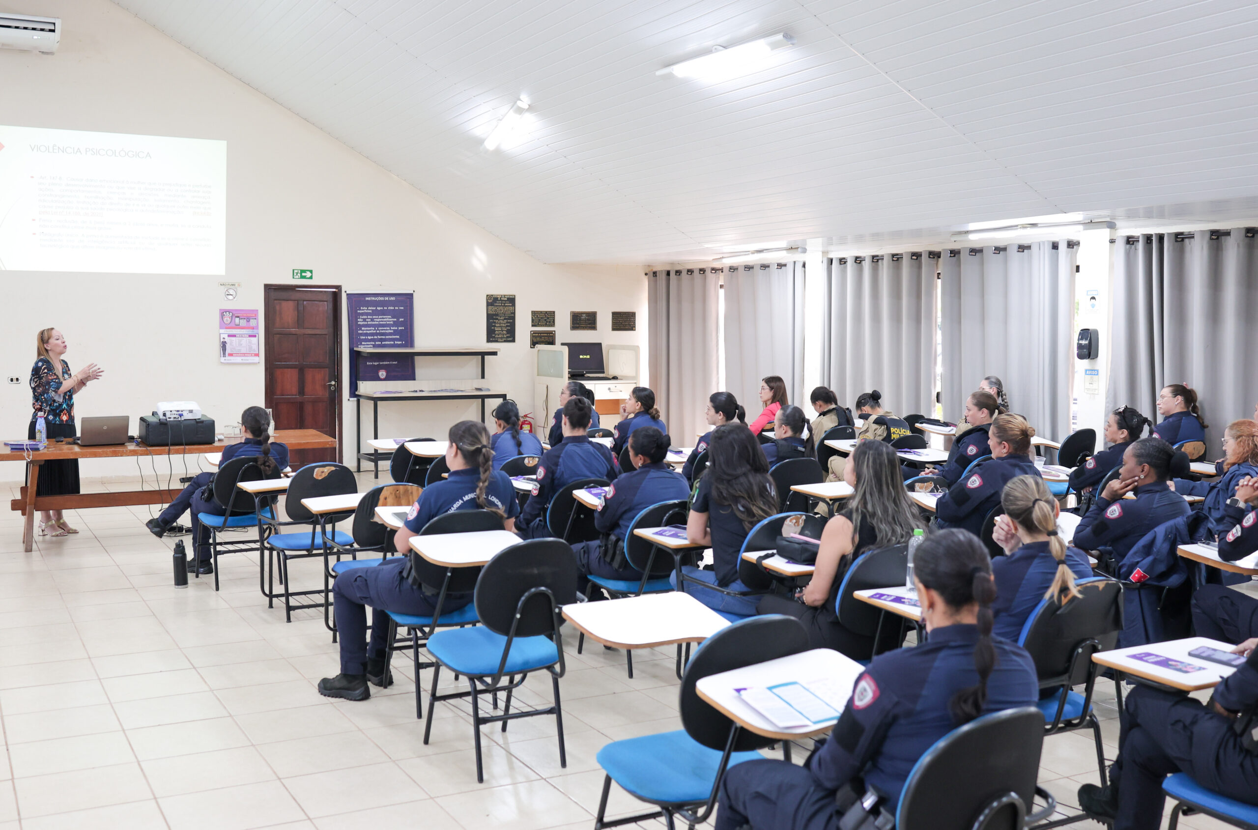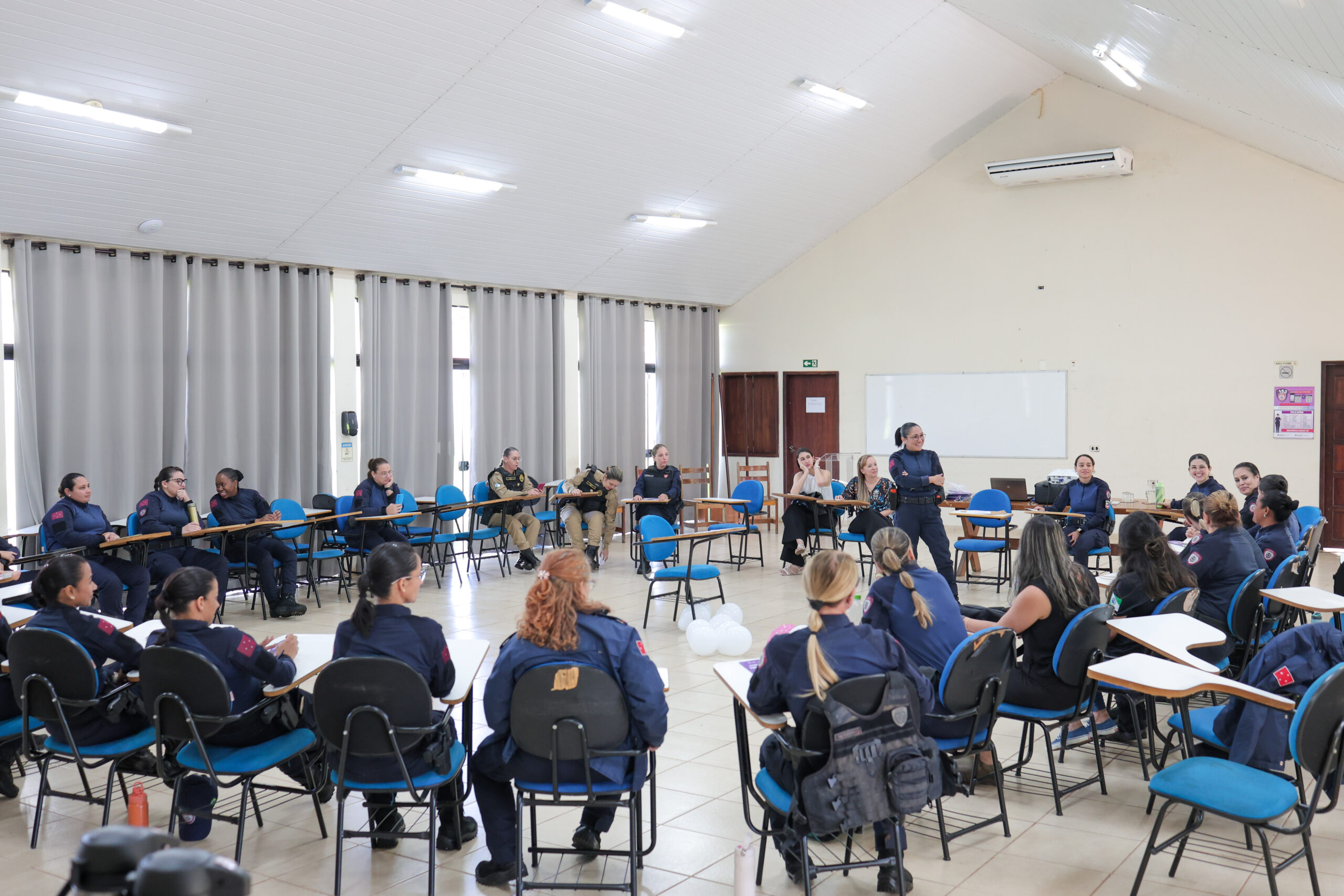 Iniciativa foi promovida pela juíza Cláudia Andrea Bertolla Alves, do 1º Juizado de Violência Doméstica e Familiar com a agente da GM e doutoranda da UEL, Aline Salles Pedrazani.O Centro de Formação da Guarda Municipal de Londrina (CFGM) foi palco de um importante encontro voltado à conscientização e ao enfrentamento da violência doméstica e familiar no início dessa semana. Com o tema “Quem cuida de quem cuida?”, o evento reuniu agentes da Guarda Municipal, além de representantes das polícias Militar e Civil, promovendo um espaço de diálogo e fortalecimento das servidoras que lidam diariamente com esse tipo de ocorrência.