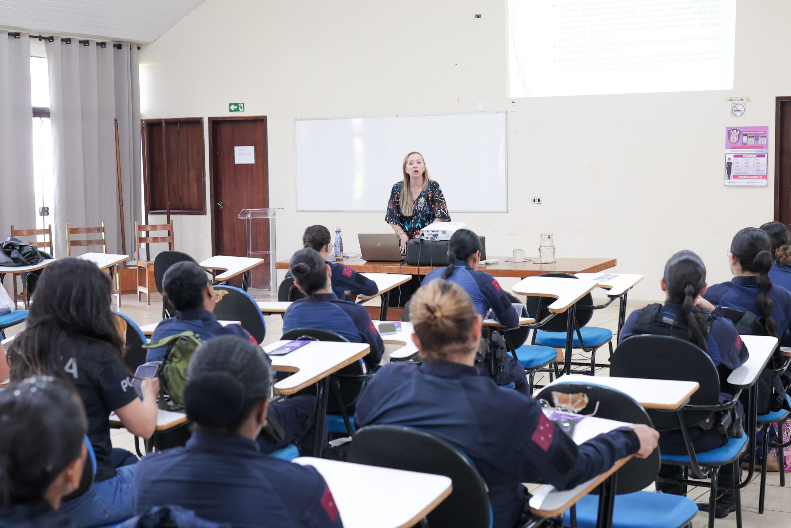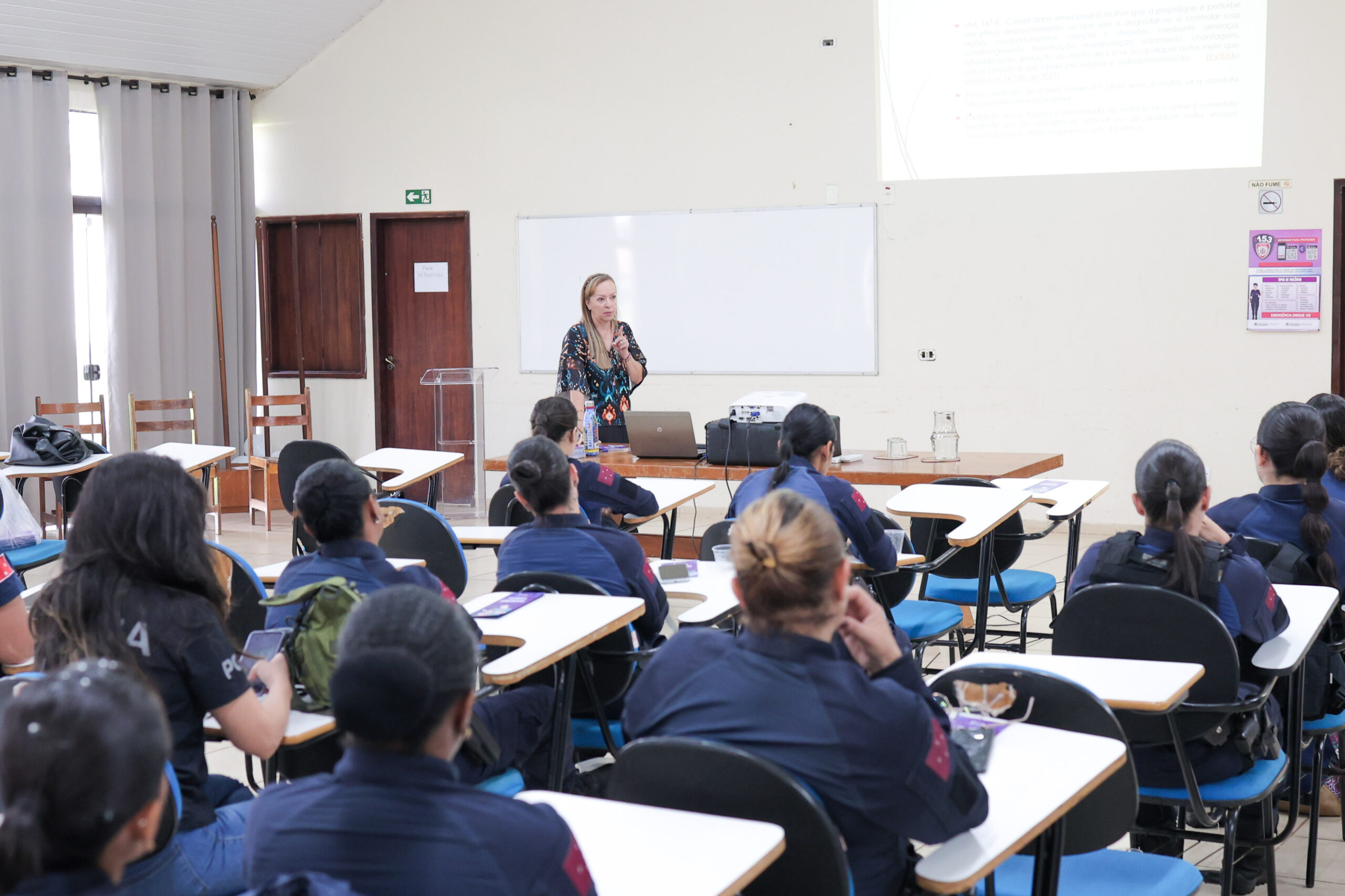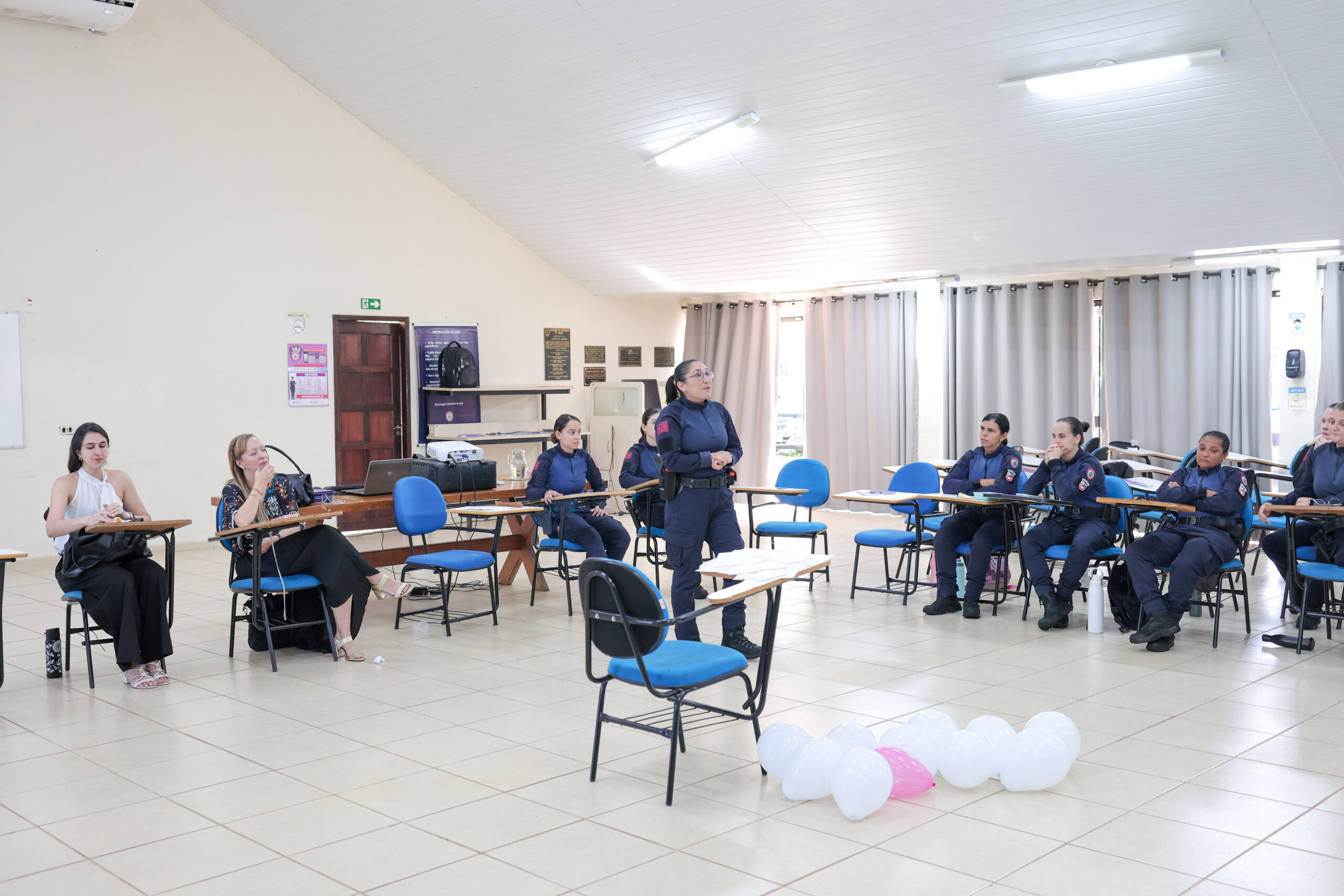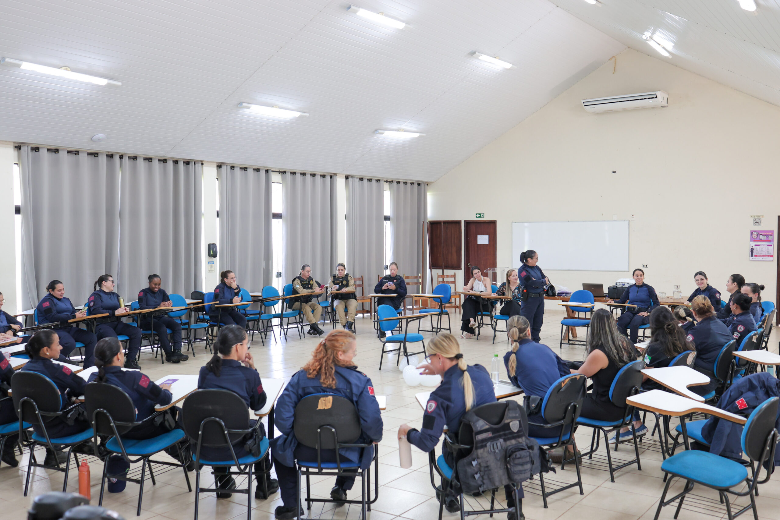 Iniciativa foi promovida pela juíza Cláudia Andrea Bertolla Alves, do 1º Juizado de Violência Doméstica e Familiar com a agente da GM e doutoranda da UEL, Aline Salles Pedrazani.O Centro de Formação da Guarda Municipal de Londrina (CFGM) foi palco de um importante encontro voltado à conscientização e ao enfrentamento da violência doméstica e familiar no início dessa semana. Com o tema “Quem cuida de quem cuida?”, o evento reuniu agentes da Guarda Municipal, além de representantes das polícias Militar e Civil, promovendo um espaço de diálogo e fortalecimento das servidoras que lidam diariamente com esse tipo de ocorrência.