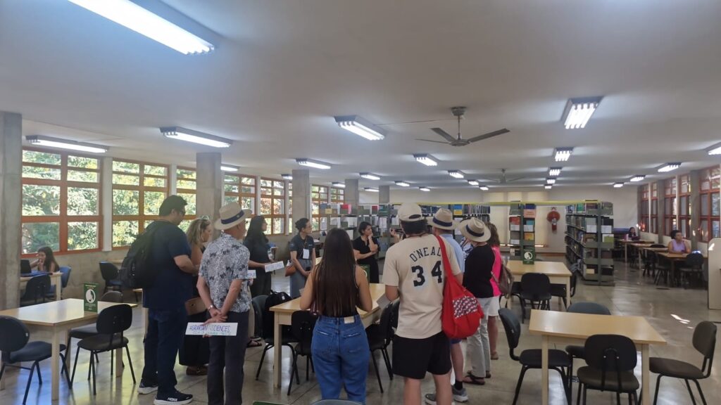 O grupo conheceu a Biblioteca Central, que integra a infraestrutura do Sistema de Bibliotecas da UEL que conta com 199 mil títulos, mais de 325 mil exemplares (volumes) e mais de 347 mil periódicos. De lá, o grupo caminhou pelo Calçadão passando por Centros de Ensino até o Centro de Educação Infantil (CEI) do Campus, onde assistiriam uma apresentação infantil.